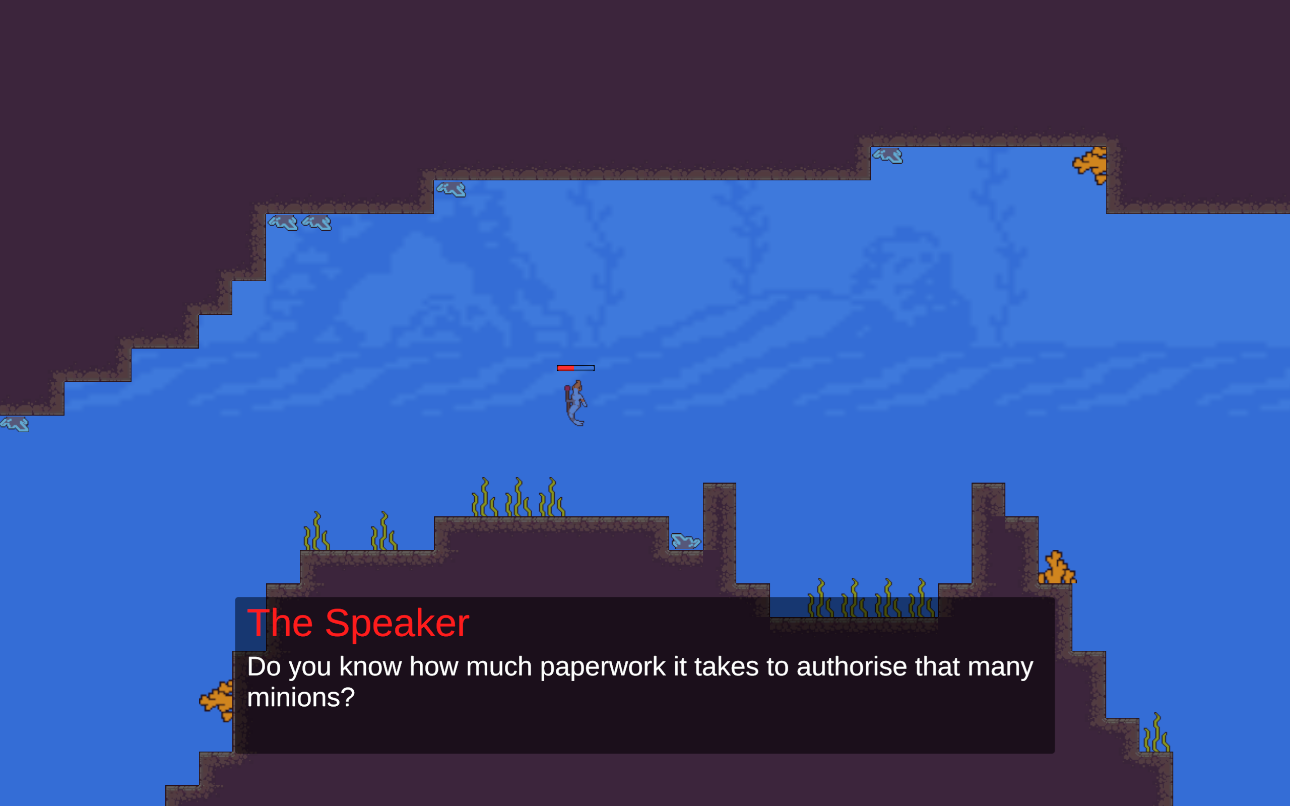 The Speaker is me. Your storyteller. The voice that will guide you through this underwater cavern, providing insight, analysis, and sometimes helpful critique. You play as... well, someone. She is silent. She doesn't provide an explanation. She simply hits objects and swims. Not very charming. Navigating an underwater cave, racing through peril, and facing whatever awaits at the end.